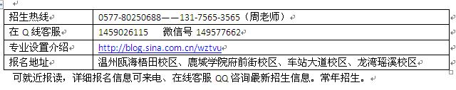 招生热线 | 0577-80250688——131-7565-3565(周老师) |