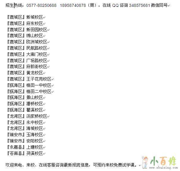 招生热线:0577-80250688 18958740878(周),在线QQ咨询348575681微信同号