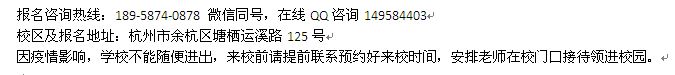 校区及报名地址:杭州市余杭区塘栖运溪路125号