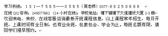 在线QQ咨询:149577662 (24小时在线);学校地址:塘下镇塘下大道建设大厦2-3楼
