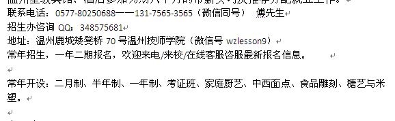 地址:温州鹿城矮凳桥70号温州技师学院(微信号wzlesson9)
