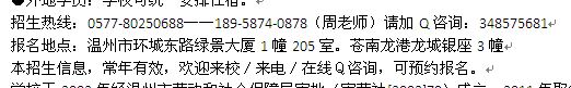 报名地点:温州市环城东路绿景大厦1幢205室。苍南龙港龙城银座3幢