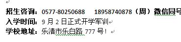 招生咨询:0577-80250688 18958740878(周)微信同号