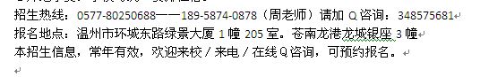 报名地点:温州市环城东路绿景大厦1幢205室小+百+姓+网。苍南龙港龙城银座3幢