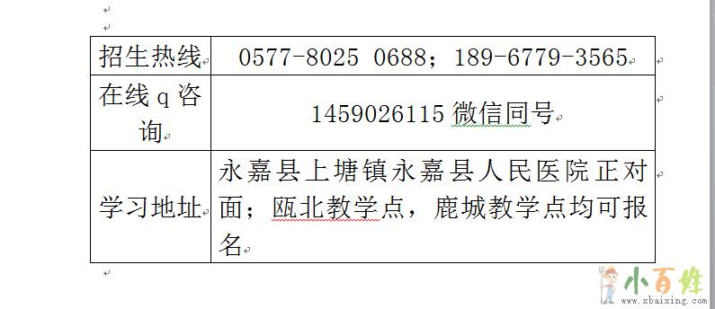 学习中心地址 | 永嘉县上塘镇永嘉县人民医院正对面;瓯北教学点,鹿城教学点均可报名 |