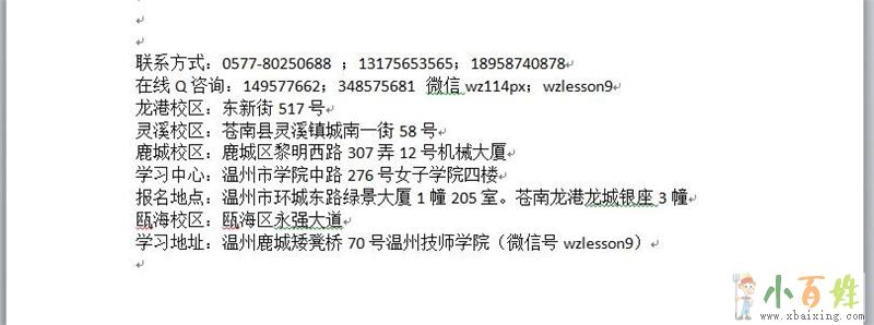 报名地点:温州市环城东路绿景大厦1幢205室www.xbaixing.com。苍南龙港龙城银座3幢