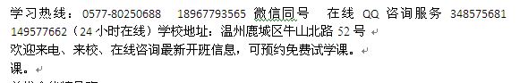 学习热线:0577-80250688 18967793565微信同号 在线QQ咨询服务348575681 149577662(24小时在线)学校地址:温州鹿城区牛山北路52号