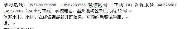 学习热线:0577-80250688 18967793565微信同号 在线QQ咨询服务348575681 149577662(24小时在线)学校地址:温州鹿城区牛山北路52号