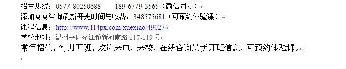 添加QQ咨询最新开班时间与收费:348575681(可预约体验课)