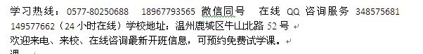 学习热线:0577-80250688 18967793565微信同号 在线QQ咨询服务348575681 149577662(24小时在线)学校地址:温州鹿城区牛山北路52号