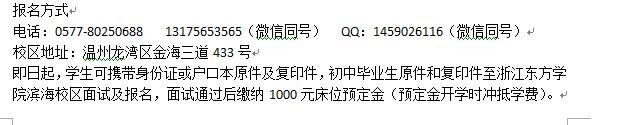浙江东方学院滨海校区初中起点 高端职业教育就业订单班招生简章