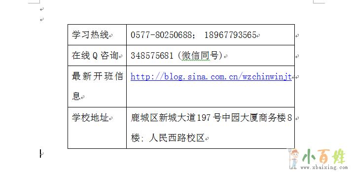 常年招生,每月新班,欢迎来电/来校/在线客服咨询最新开课信息,可预约免费体验课小~百~姓~网。