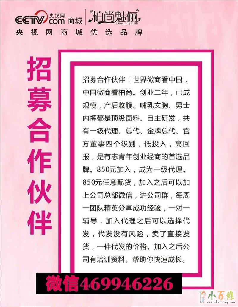 柏尚魅俪公司在哪里?怎么做代理,怎么拿货,有授权吗作为女性也许你可以一年365天不护肤,但是你不可能一年365天不穿内衣,我一个平凡的妈妈!千万从事内衣行业其中一员!我是卖内衣的,no!no!我不只是...