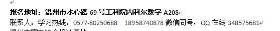 报名地址:温州市水心路69号工科院内科尔数字A208