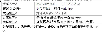 学习热线:0577—80250688 13175653565(周);在线QQ咨询:348575681微信同号;学习地址 虹桥镇合兴路216-230号;新校区:虹桥新丰路1号欢迎来电、来校、在线客服咨询最新开班课程信息,以上课程常年招生,每月开班,上课时间有全日制,也有业余班,包教包会,学会为止。每班名额有限,请同学们提早预约。...