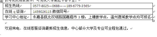 学习中心地址 | 永嘉县瓯北双塔路国嘉超市3楼;上塘教学点,温州鹿城教学点均可报名 |