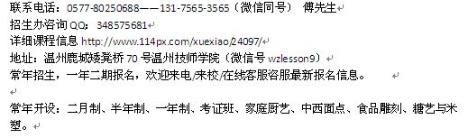 地址:温州鹿城矮凳桥70号温州技师学院(微信号wzlesson9)