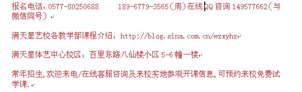 满天星艺校各教学部课程介绍:http://blog.sina.com.cn/wzxyhz