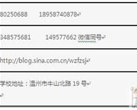 招生电话80250688 18958740878在线QQ348575681 149577662微信同号招生信息http://blog.sina.com.cn/wzfzsj学校地址学校地址:温州市牛山北路19号..