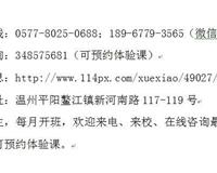 招生热线:0577-8025-0688;189-6779-3565(微信同号)添加QQ咨询:348575681(可预约体验课)课程信息:http://www.114px.com/xuexiao/49027/ 学校地址:温州平阳鳌江镇新河南路117-119号常年招生,每月开班,欢迎来电、来校、在线咨询最新开班信息,可预约体验课。..